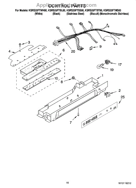 Parts for Kitchenaid KSRS25FTBT00: 10 - Control Parts