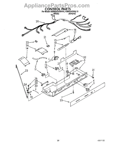 Parts for Kitchenaid KSRS25QXWH10: 12 - Control Parts