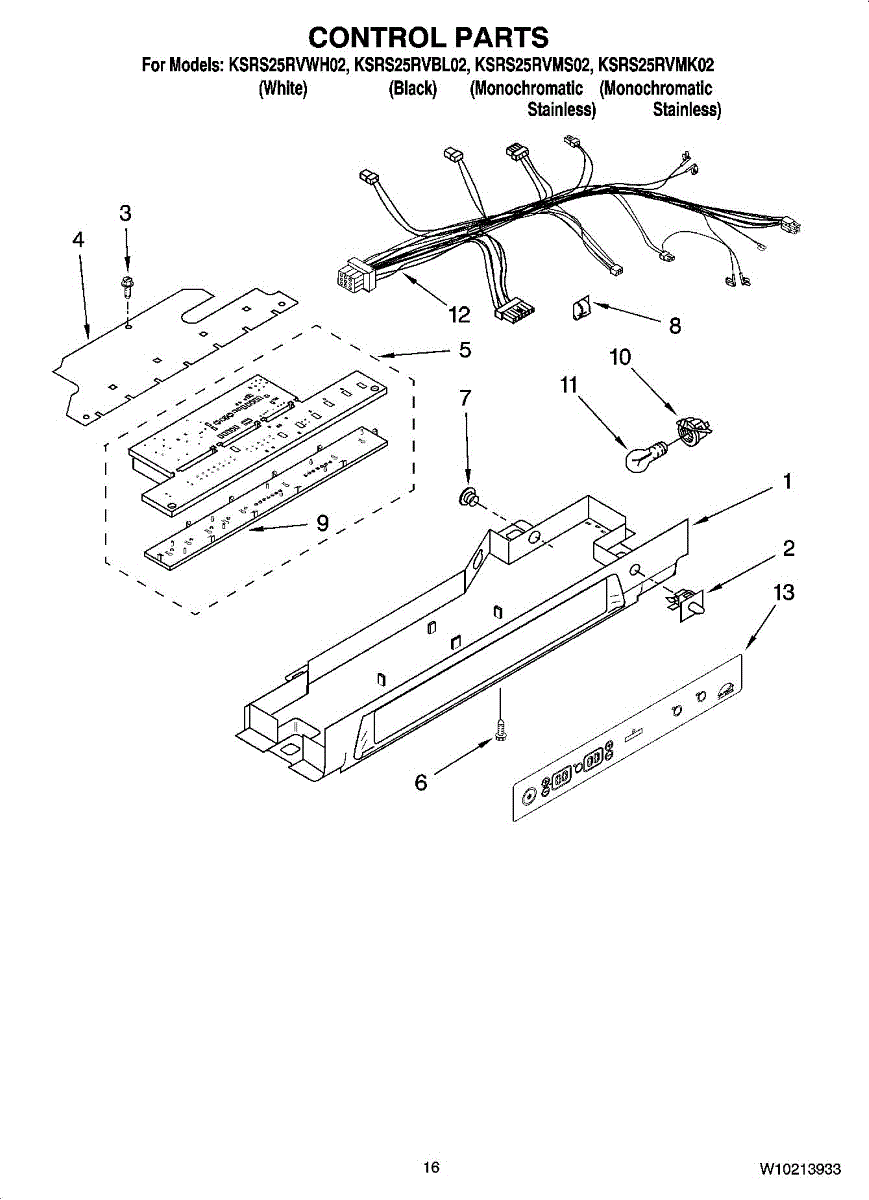 Parts for Kitchenaid KSRS25RVMK02: 10 - Control Parts
