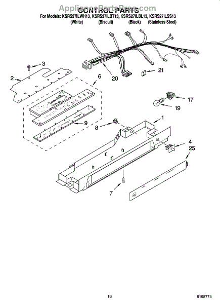 Parts for Kitchenaid KSRS27ILSS13: 10 - Control Parts
