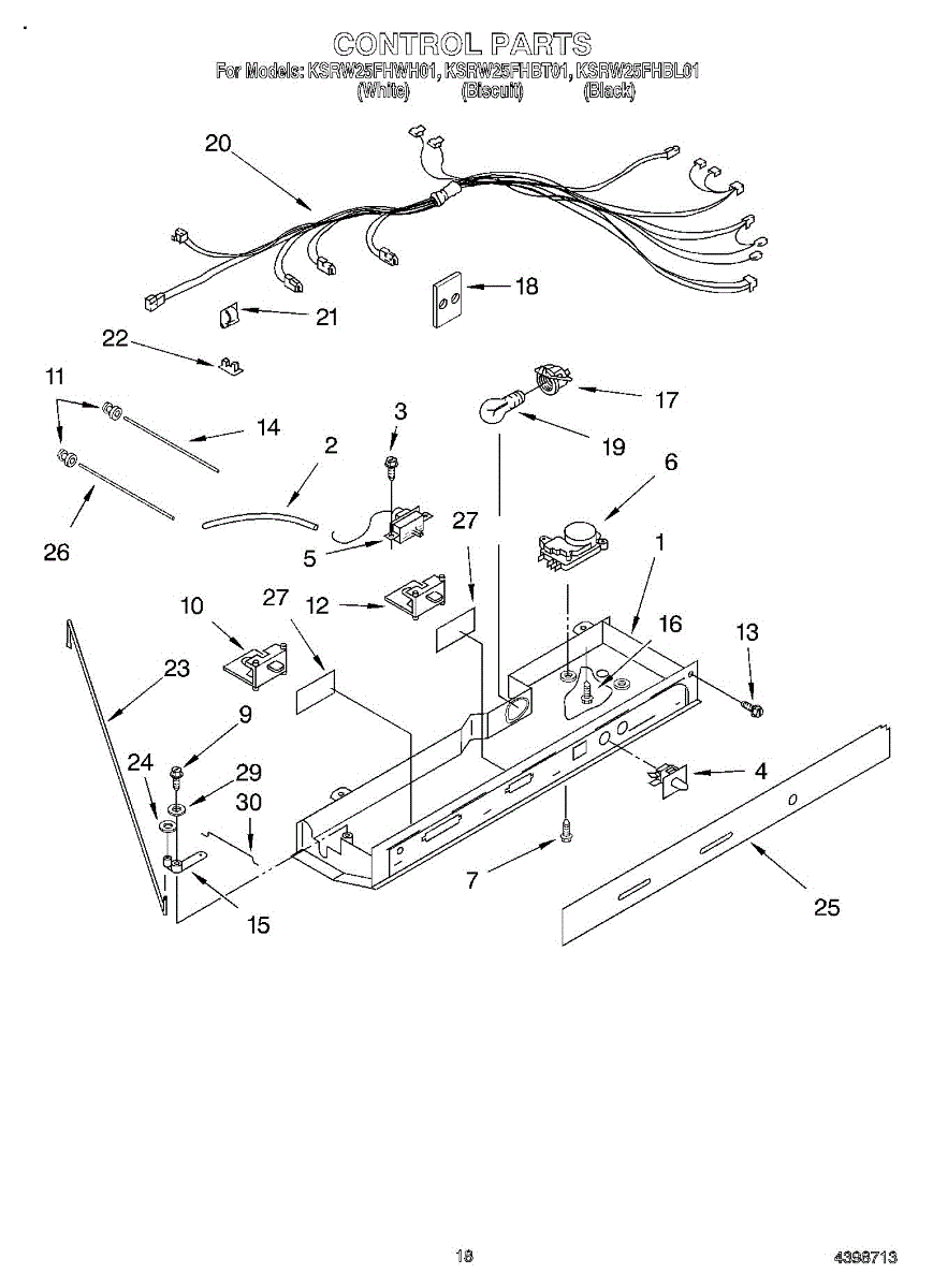 Wiring harness that connects to the refrigerator control box. Replace if wires are frayed, connectors are damaged, or harness is broken or missing.