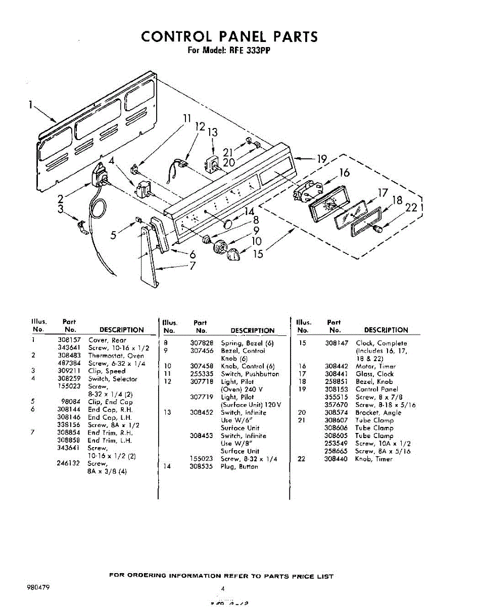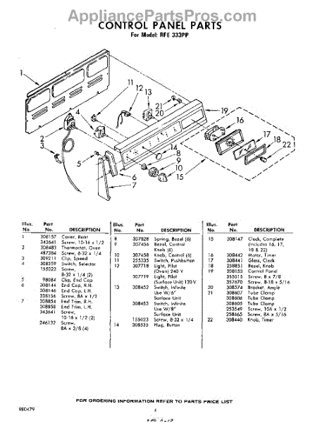 Parts for Whirlpool RFE333PP: 04 - Control Parts