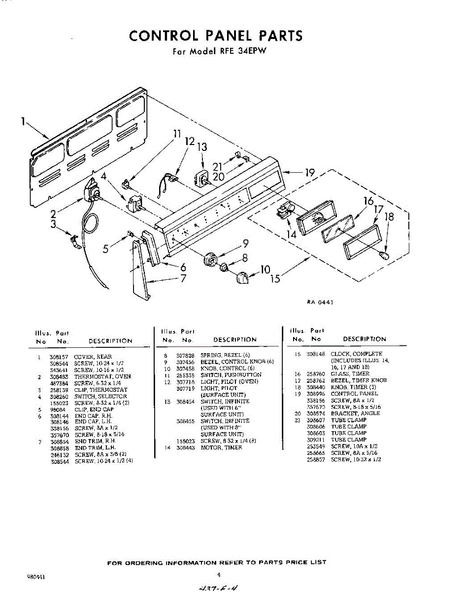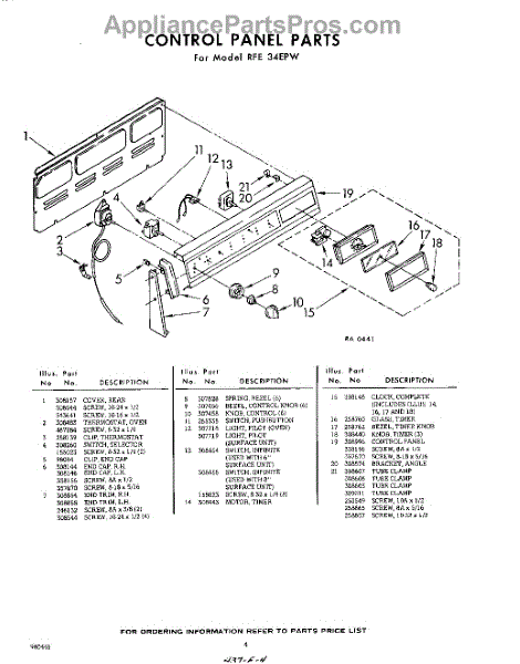 Parts for Whirlpool RFE34EPW: 04 - Control Parts