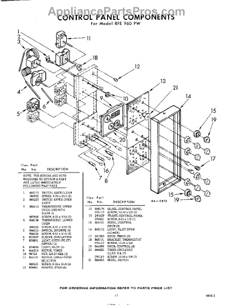 Parts for Whirlpool RFE960PW: 11 - Control Parts