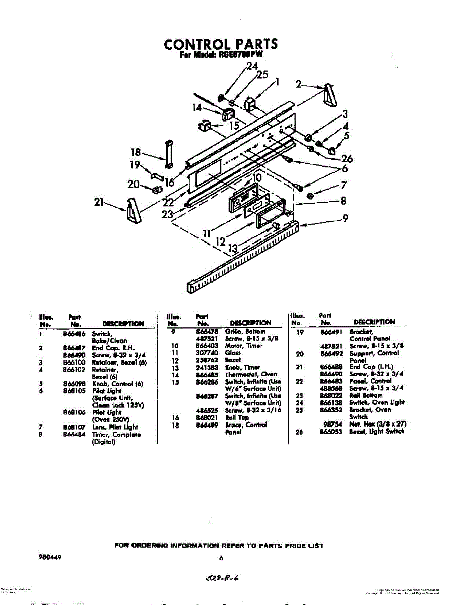 Parts for Whirlpool RGE6700PW: 06 - Control Parts