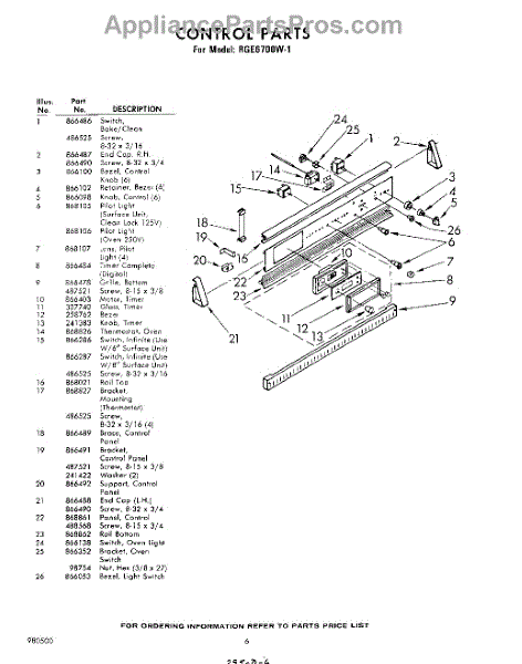 Parts for Whirlpool RGE6700W1: 06 - Control Parts