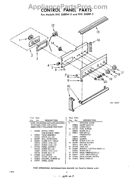 Parts for Whirlpool RYE2688W5: 06 - Control Parts
