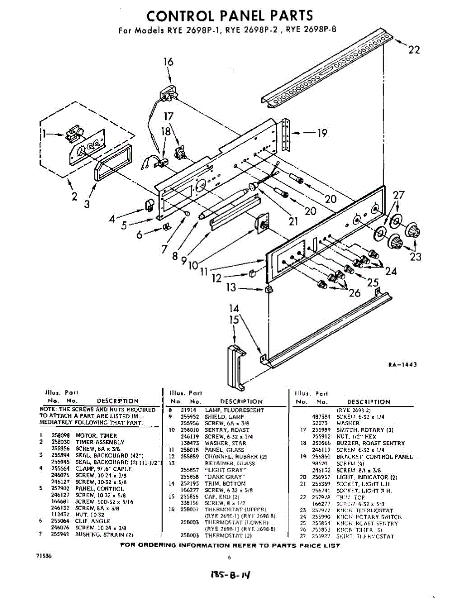 Parts for Whirlpool RYE2698P2: 06 - Control Parts