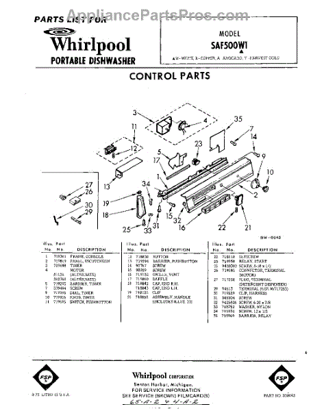 Parts for Whirlpool SAF500W1: 01 - Control Parts