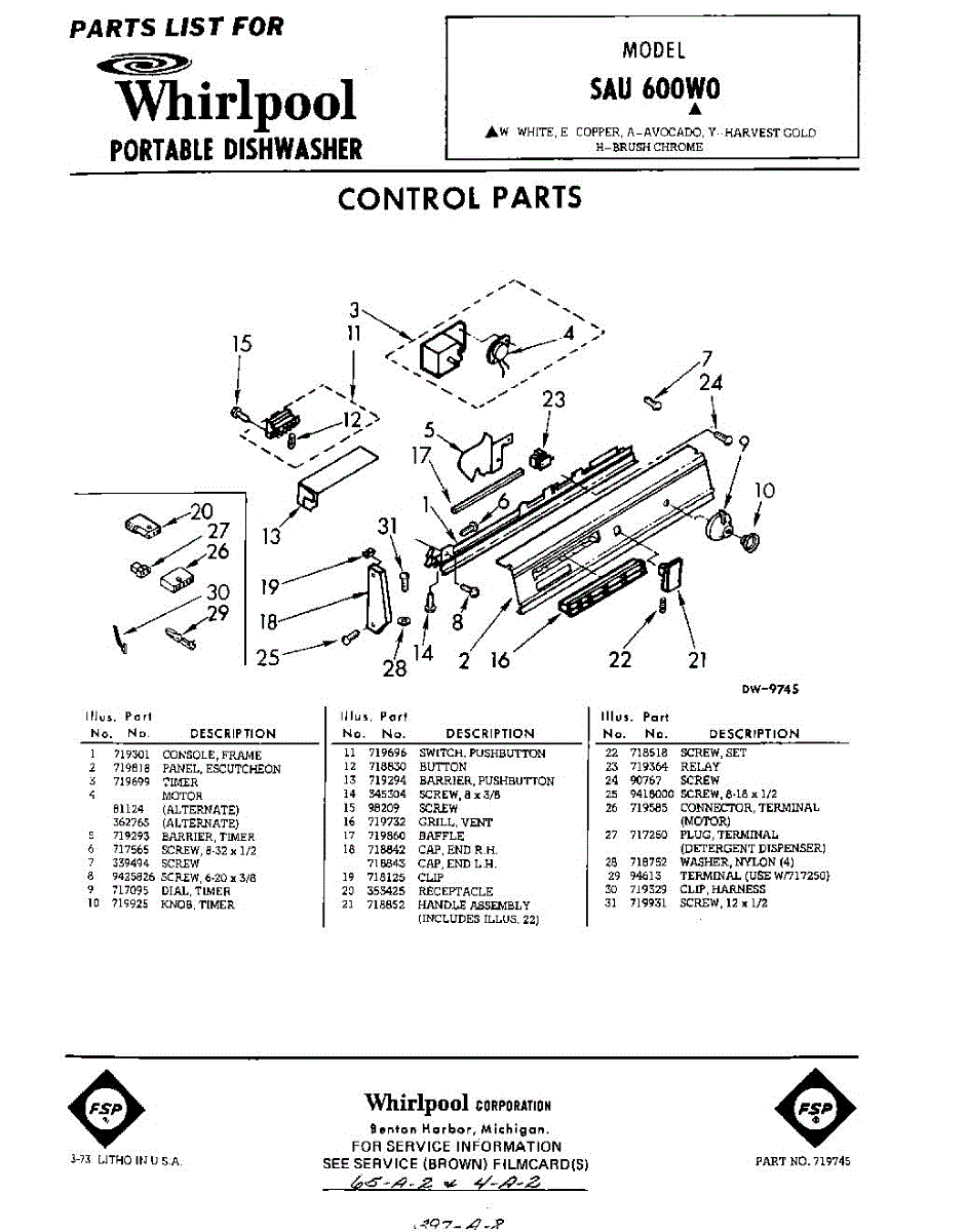Parts for Whirlpool SAU600W0: 01 - Control Parts