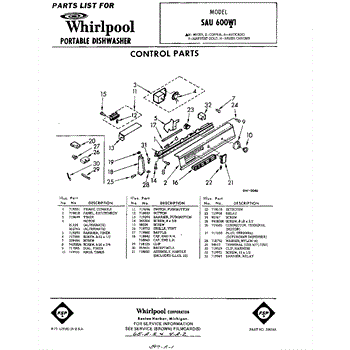 Parts for Whirlpool SAU600W1: 01 - Control Parts