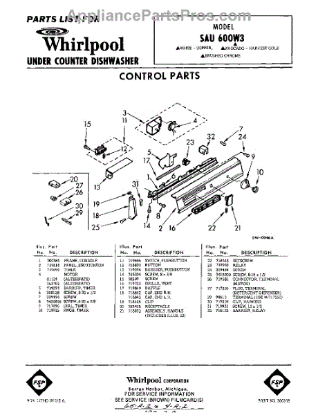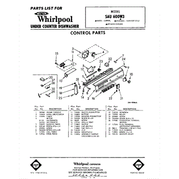 Parts for Whirlpool SAU600W3: 01 - Control Parts