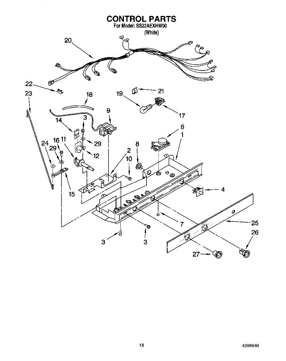 Wiring harness that connects to the refrigerator control box. Replace if wires are frayed, connectors are damaged, or harness is broken or missing.
