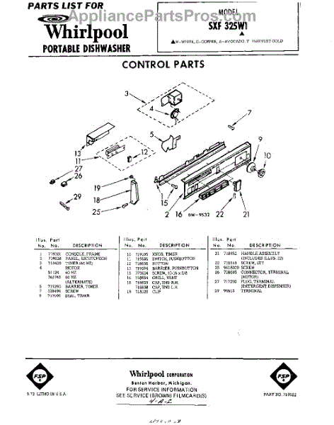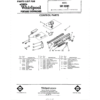 Parts for Whirlpool SXF325W1: 01 - Control Parts