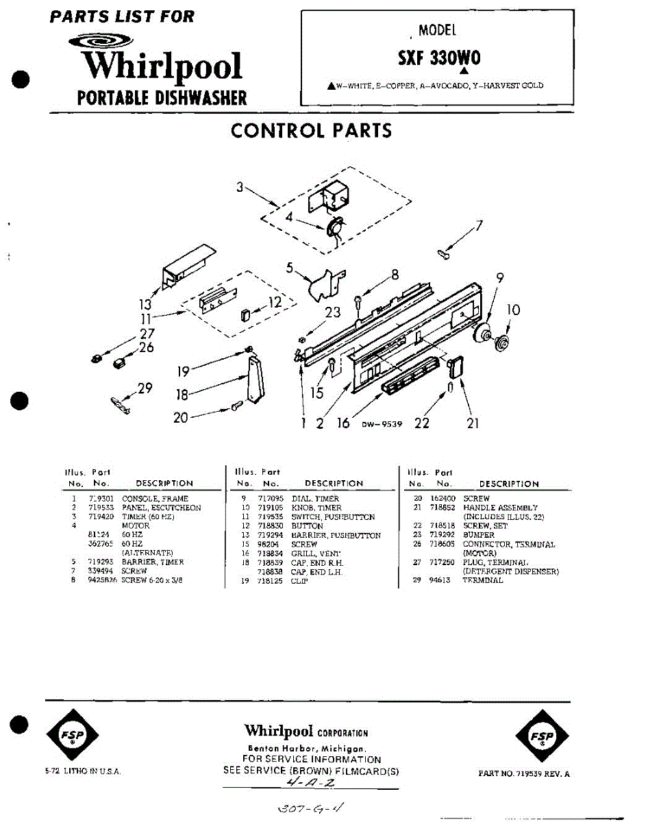 Parts for Whirlpool SXF330W0: 01 - Control Parts