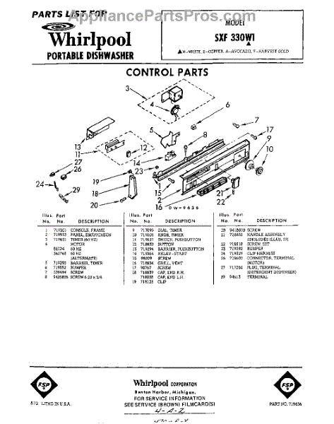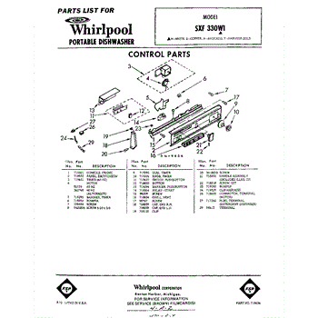 Parts for Whirlpool SXF330W1: 01 - Control Parts