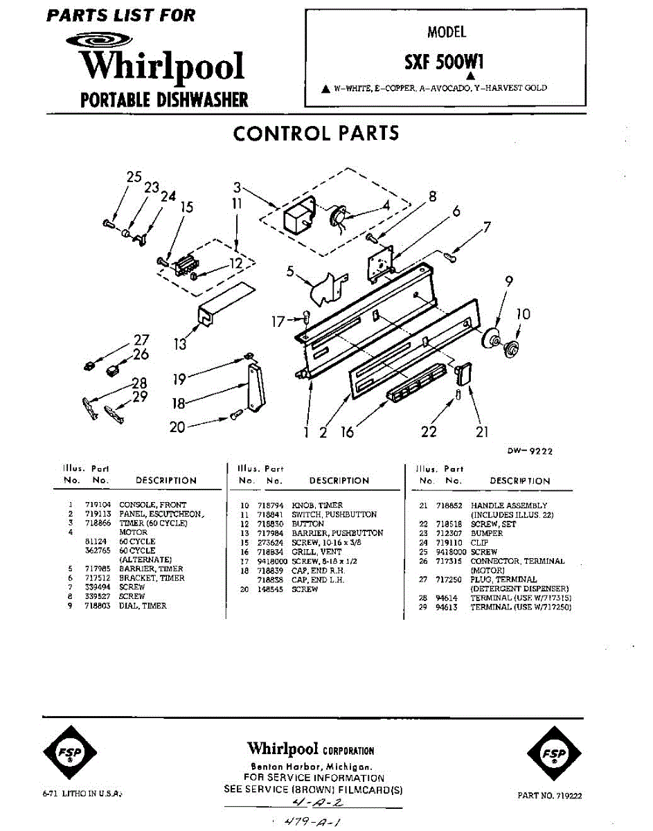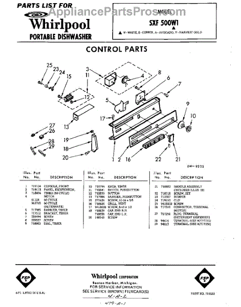 Parts for Whirlpool SXF500W1: 01 - Control Parts