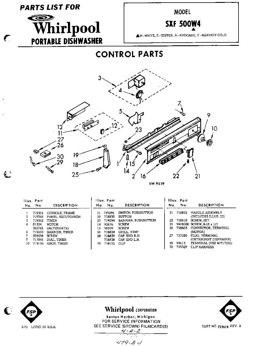 Parts for Whirlpool SXF500W4: 01 - Control Parts