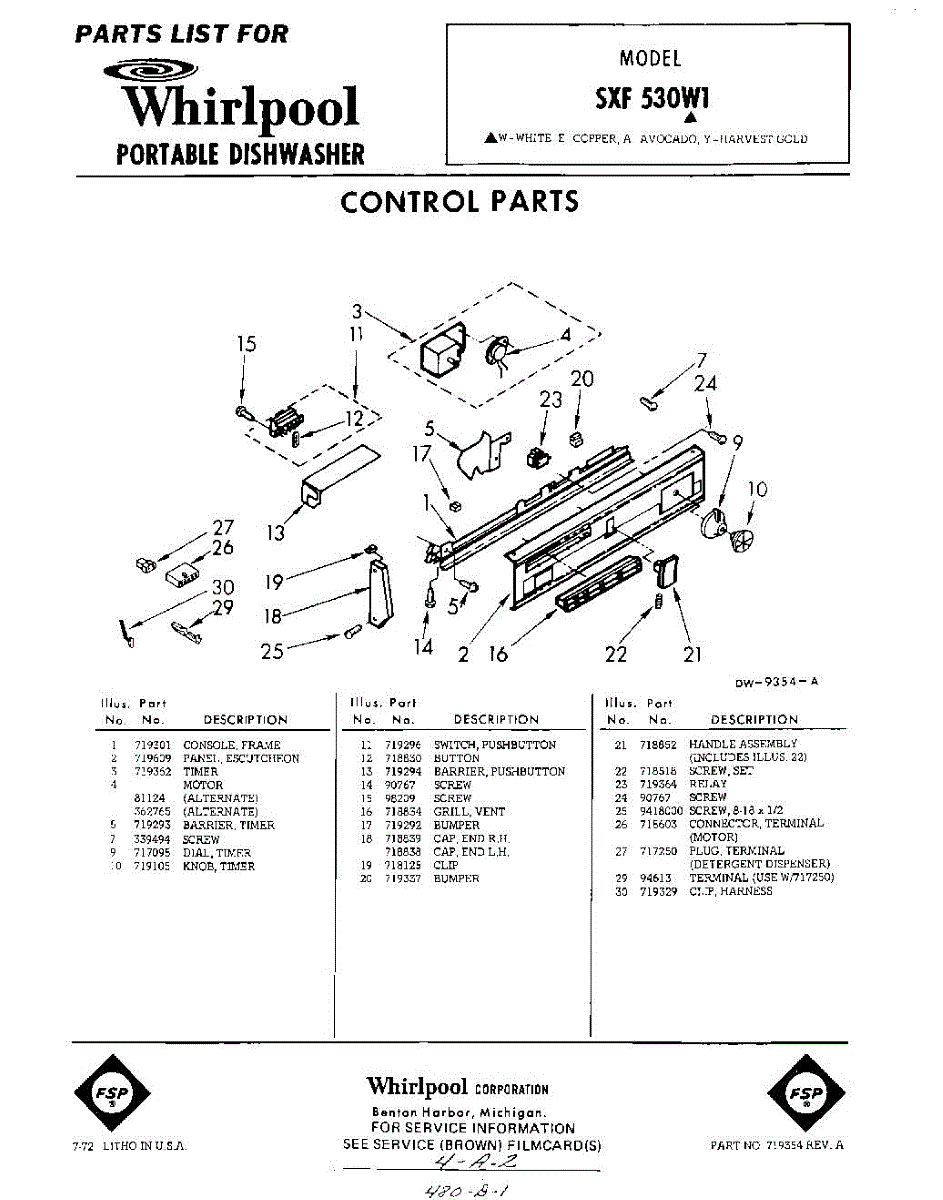 Parts for Whirlpool SXF530W1: 01 - Control Parts