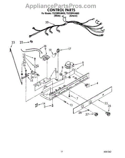 Parts for Whirlpool TS22BRXAW00: 12 - Control Parts