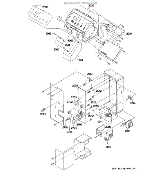 This control base assembly is the molded housing that holds the appliance's user-interface components. Replacing a damaged base restores proper alignment and secure mounting of the control board, switches, and display for dependable operation.