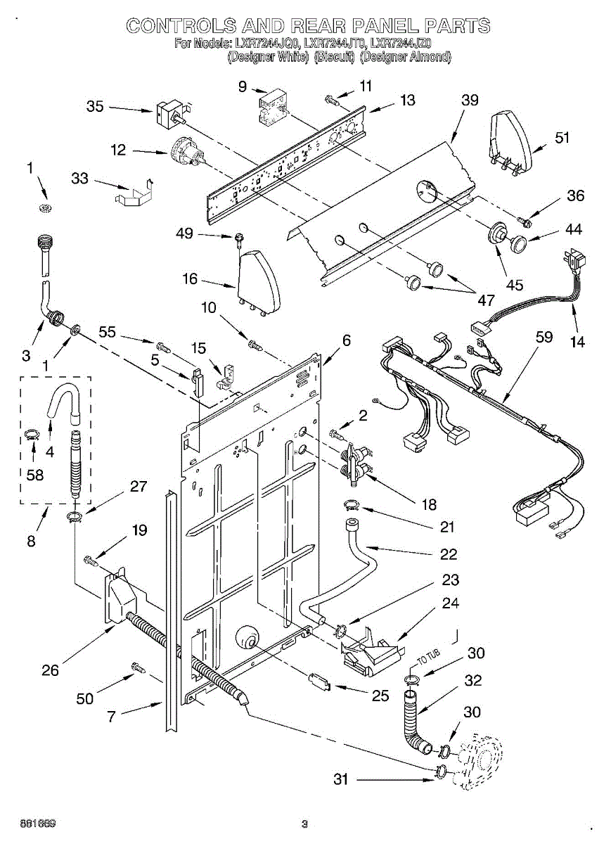 Parts for Whirlpool LXR7244JZ0: 02 - Control And Rear Panel Parts