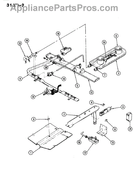 For top surface burners. Configuration: 2 + 0.