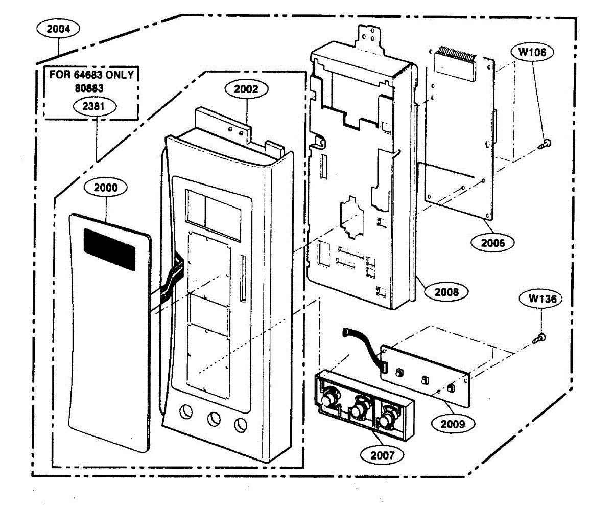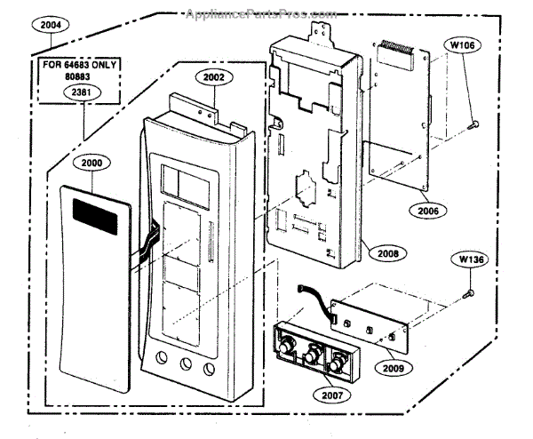 Microwave touch pad control panel that mounts on the front console. Replace if buttons are unresponsive, cracked, worn, or membrane is damaged.