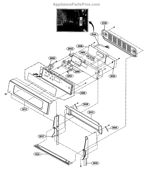 This control panel assembly is the front user interface that holds the touchpad/buttons and display, restoring responsive controls and a finished look to the appliance. It replaces a cracked, faded, or unresponsive front control surface. What it does
