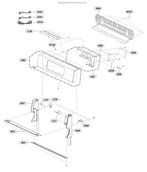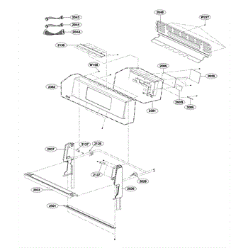 The Oven Control Panel Assembly is an OEM replacement part for LG electric ranges. It houses both the electronic control interface and physical mounting plate/supports.