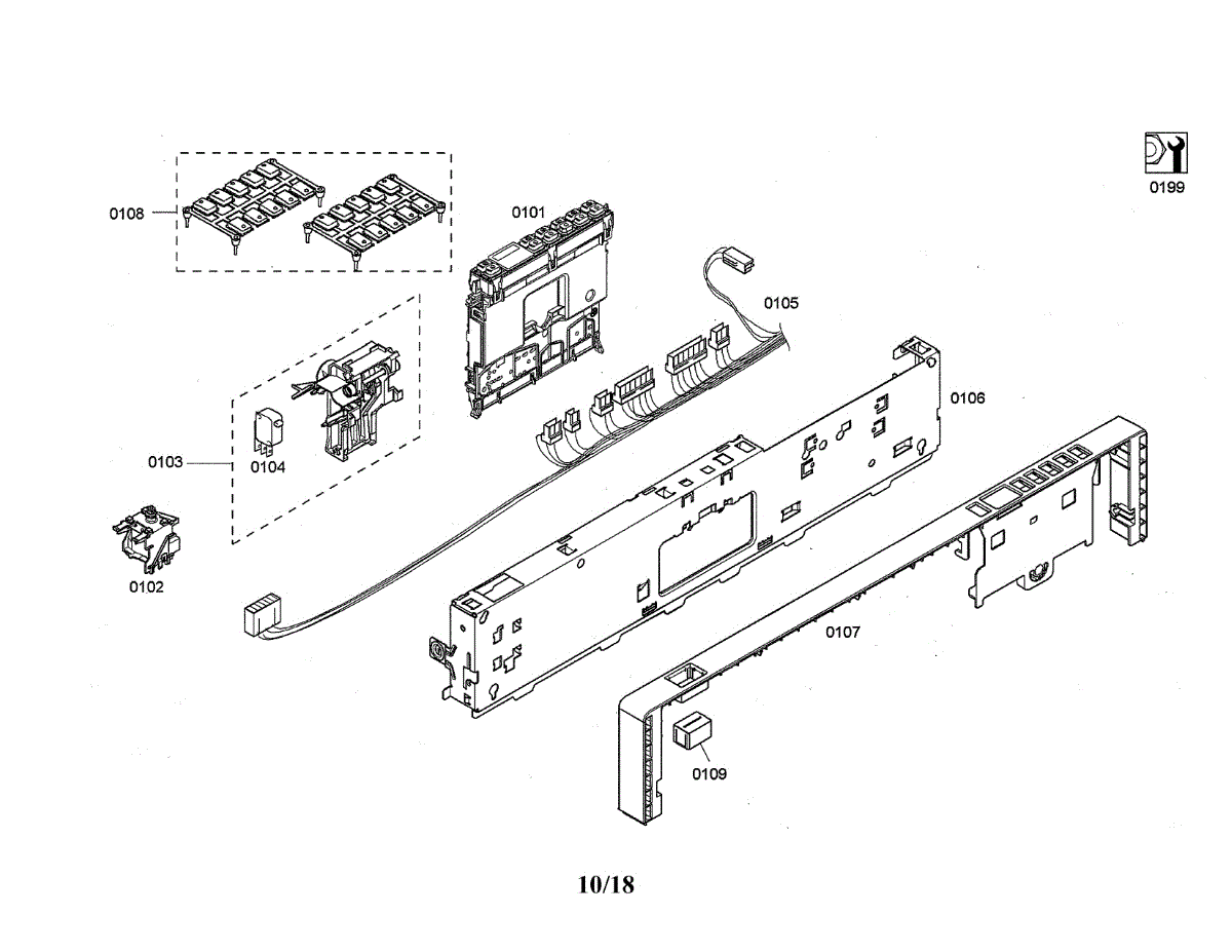 Cable harness for dishwasher control panel wiring. Replaces damaged, frayed, or corroded wiring harnesses. Essential for restoring connections.