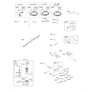 Parts for Briggs & Stratton 31Q507-0012-H1: Controls, Alternator, Wire Assy, Electric Starter, Governor Spring, Ignition Parts
