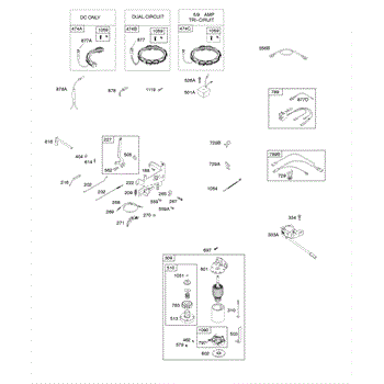 Parts for Briggs & Stratton 31R607-0014-B1: Controls, Alternator, Wire Assy, Electric Starter, Governor Spring, Ignition Parts