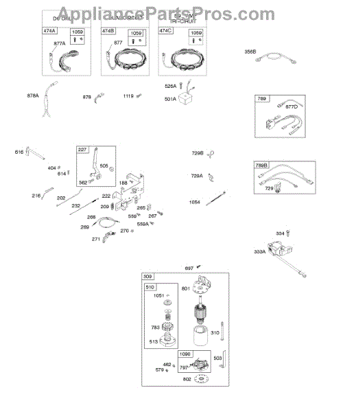 Parts for Briggs & Stratton 31R677-0002-B1: Controls, Alternator, Wire Assy, Electric Starter, Governor Spring, Ignition Parts