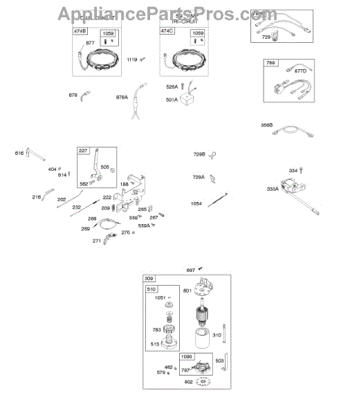 Parts for Briggs & Stratton 31R877-0018-B1: Controls, Alternator, Wire Assy, Electric Starter, Governor Spring, Ignition Parts