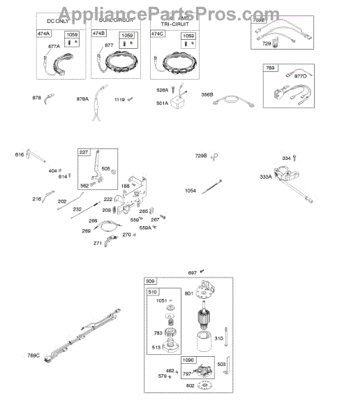 Parts for Briggs & Stratton 31S777-0002-B1: Controls, Alternator, Wire Assy, Electric Starter, Governor Spring, Ignition Parts