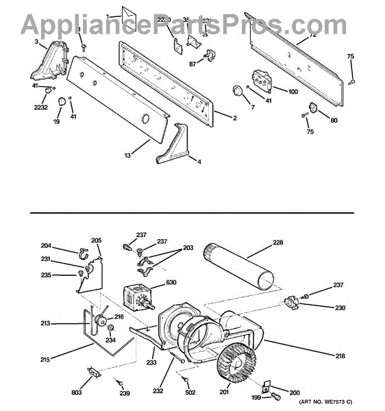 The Blower Wheel is an OEM replacement part for GE dryers. It has a role in the air circulation within the dryer, aiding in the even and efficient drying of clothes. The blower wheel, connected to the motor, helps in expelling the moist air out of the dryer through the exhaust vent during the drying cycle. Causes of a malfunctioning blower wheel are typically wear and tear from regular use, the accumulation of lint or debris, or damage to the wheel’s fins or central hub, which can impact its rotation and air circulation capability. Symptoms of a bad Blower Wheel include: