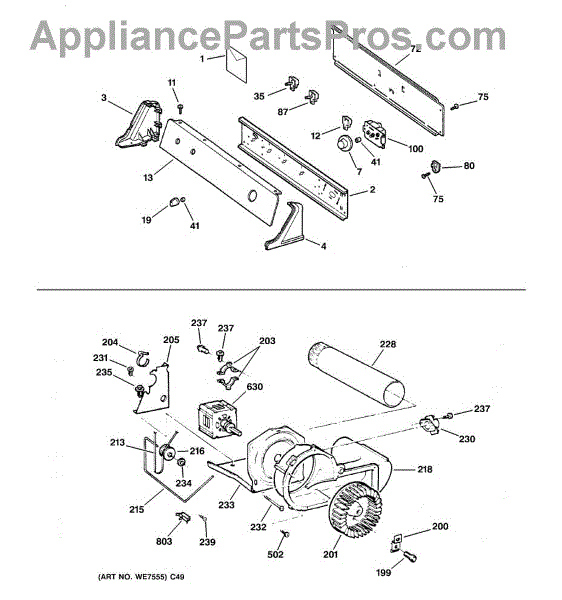 The Blower Wheel is an OEM replacement part for GE dryers. It has a role in the air circulation within the dryer, aiding in the even and efficient drying of clothes. The blower wheel, connected to the motor, helps in expelling the moist air out of the dryer through the exhaust vent during the drying cycle. Causes of a malfunctioning blower wheel are typically wear and tear from regular use, the accumulation of lint or debris, or damage to the wheel’s fins or central hub, which can impact its rotation and air circulation capability. Symptoms of a bad Blower Wheel include: