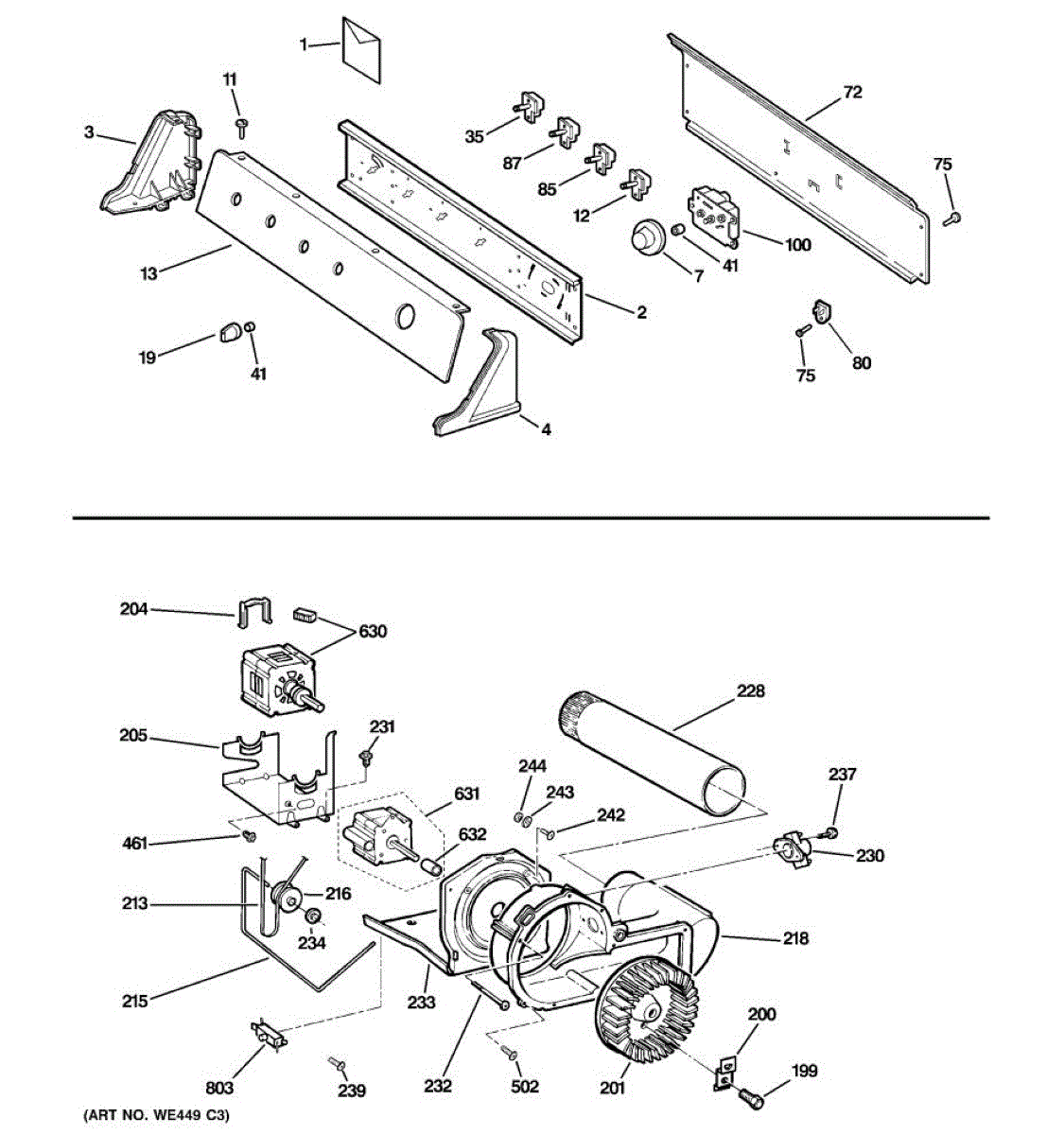 The Blower Wheel is an OEM replacement part for GE dryers. It has a role in the air circulation within the dryer, aiding in the even and efficient drying of clothes. The blower wheel, connected to the motor, helps in expelling the moist air out of the