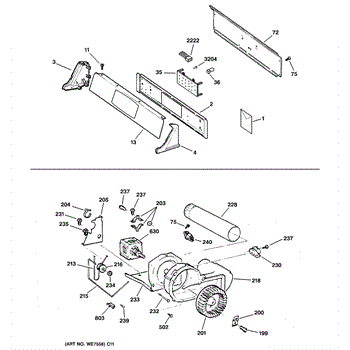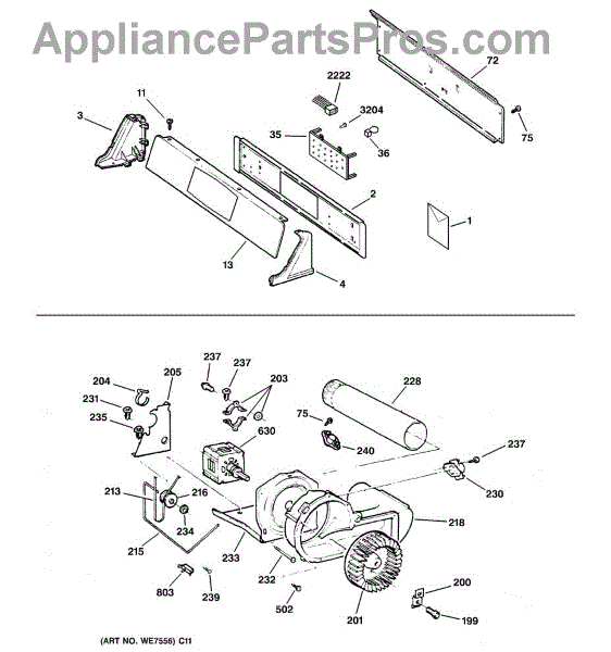 The Blower Wheel is an OEM replacement part for GE dryers. It has a role in the air circulation within the dryer, aiding in the even and efficient drying of clothes. The blower wheel, connected to the motor, helps in expelling the moist air out of the dryer through the exhaust vent during the drying cycle. Causes of a malfunctioning blower wheel are typically wear and tear from regular use, the accumulation of lint or debris, or damage to the wheel’s fins or central hub, which can impact its rotation and air circulation capability. Symptoms of a bad Blower Wheel include: