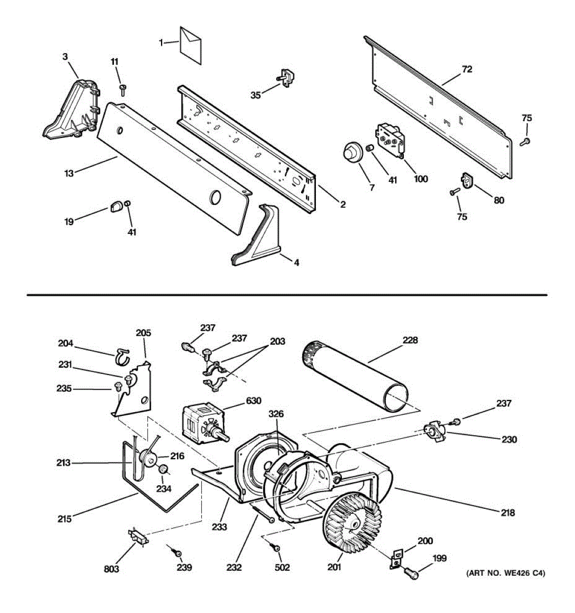 Parts for Ge DX2300EE1WW: 01 - Controls, Backsplash, Blower & Motor Parts