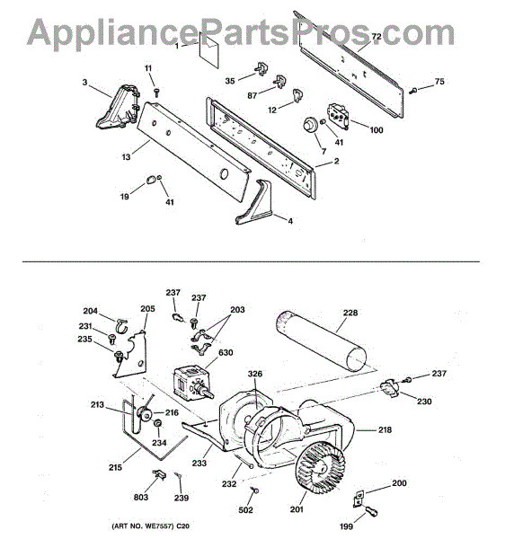 Parts for Ge DX4500GE1WW: 01 - Controls, Backsplash, Blower & Motor Parts