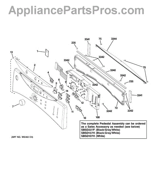 Parts for Ge DHDVH66GH2WW: 01 - Controls & Backsplash Parts