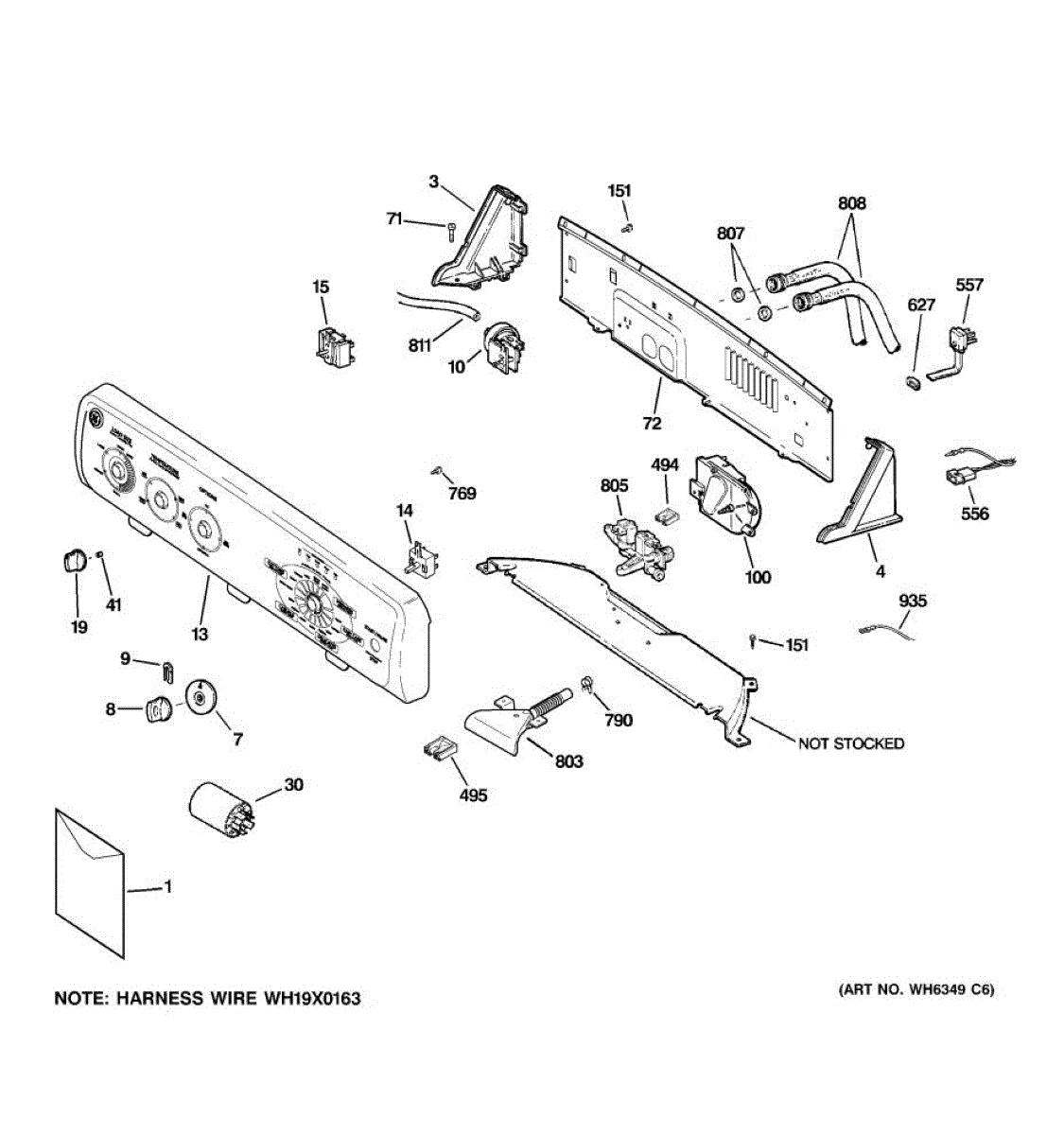 The Knob Clip is an OEM part for GE washing machines and dryers. This small but crucial component is designed to secure the control knob to the appliance's control panel.