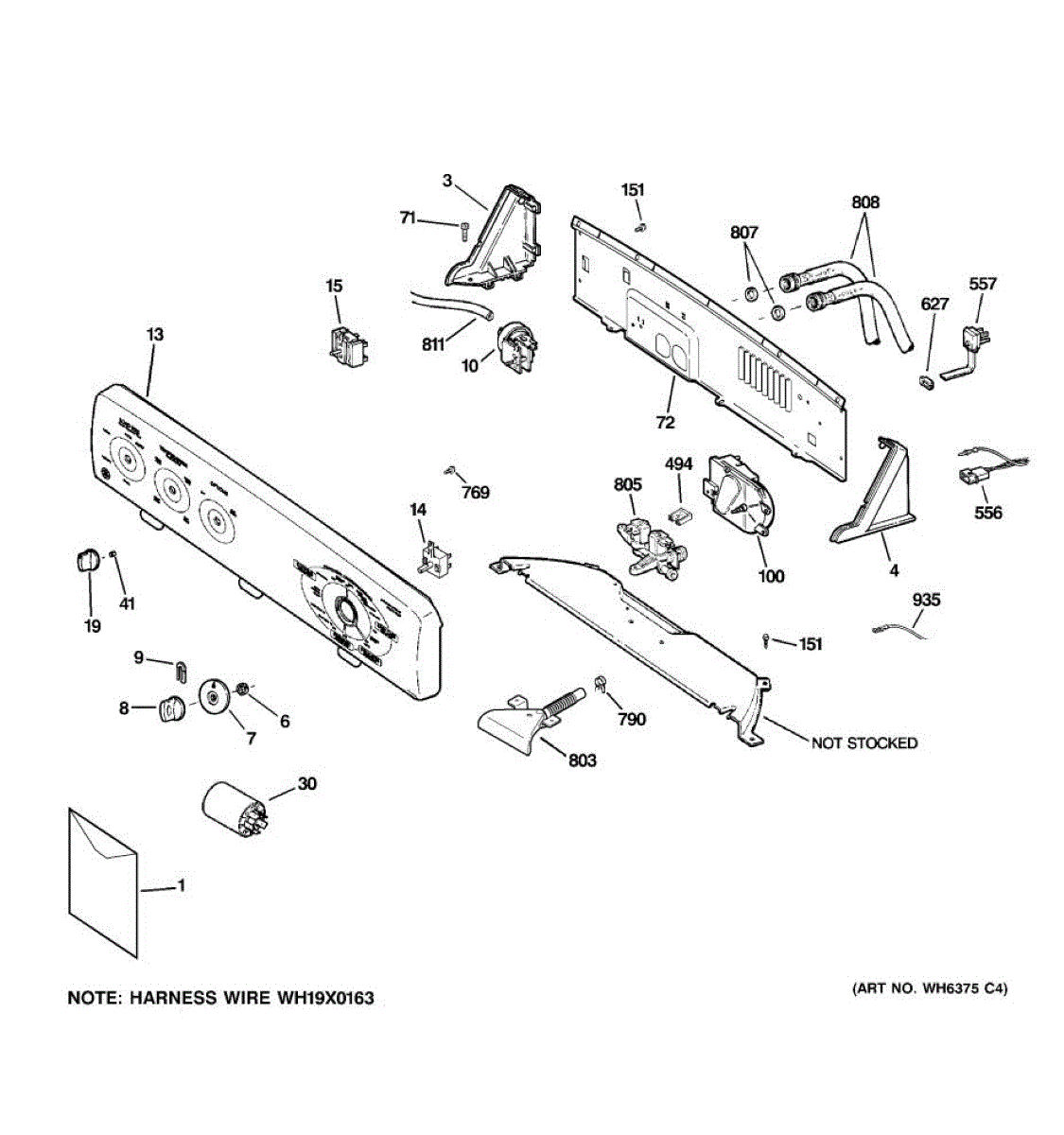 The Knob Clip is an OEM part for GE washing machines and dryers. This small but crucial component is designed to secure the control knob to the appliance's control panel.