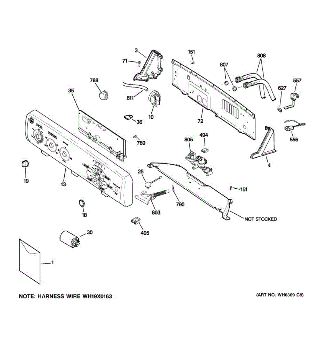 Parts for Ge PTWN6250M0WT: 01 - Controls & Backsplash Parts