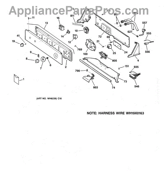 The Control Knob and Clip is an OEM part for GE washing machines and dryers. It attaches directly to the control shaft and is used to set the machine's cycles and settings. This knob allows for easy adjustment of washing or drying operations, making it a user-friendly interface for managing the appliance's functions.