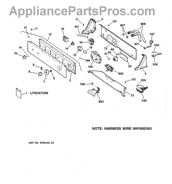 The Control Knob and Clip is an OEM part for GE washing machines and dryers. It attaches directly to the control shaft and is used to set the machine's cycles and settings. This knob allows for easy adjustment of washing or drying operations, making it a user-friendly interface for managing the appliance's functions.