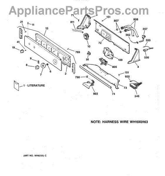 Parts for Ge WCXR1070T4WW: 01 - Controls & Backsplash Parts