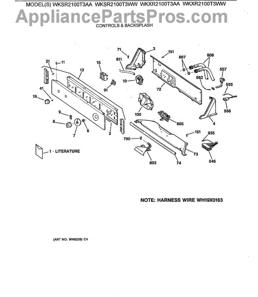Parts for Ge WKXR2100T3WW: 01 - Controls & Backsplash Parts
